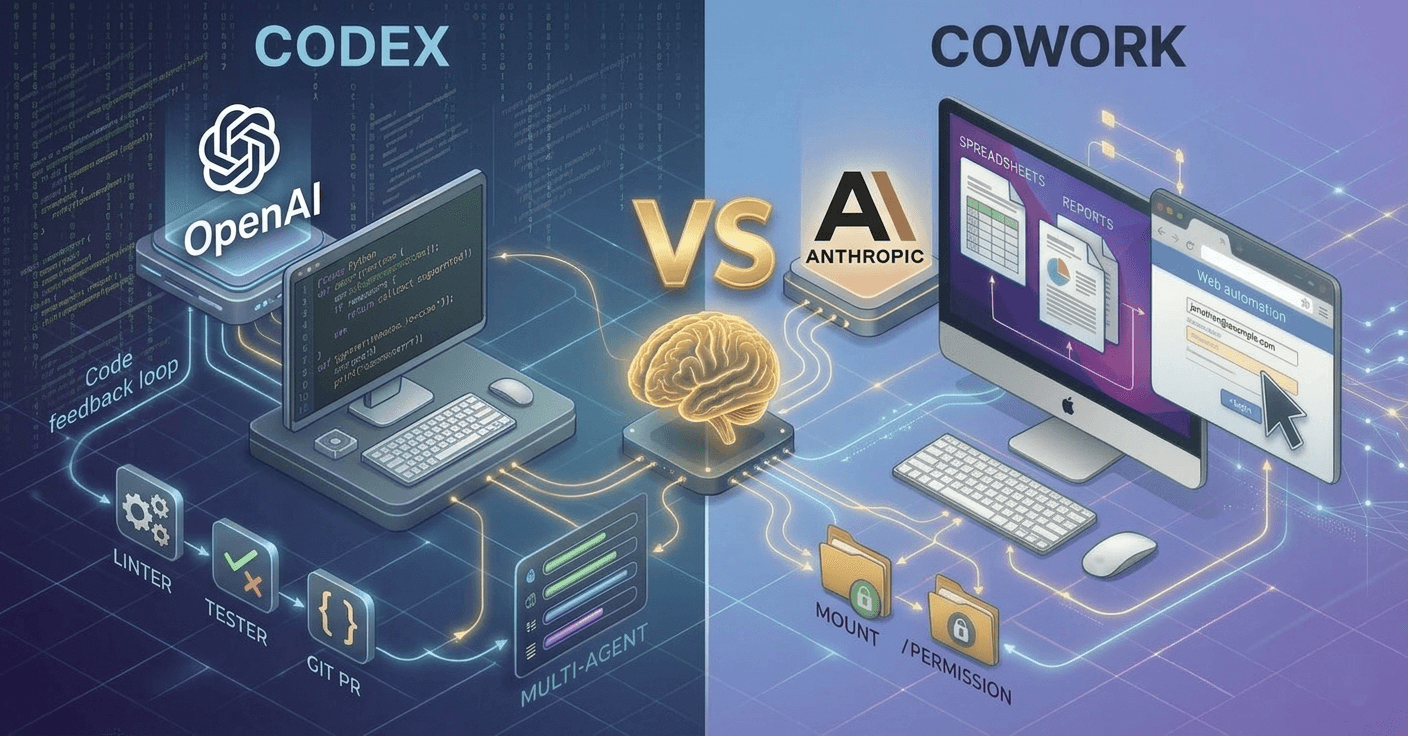 OpenAI Codex and Anthropic Claude Cowork both represent the shift from conversational AI to agentic AI—systems that don’t just answer questions, but plan and execute work. But they’re not trying to win the same job.