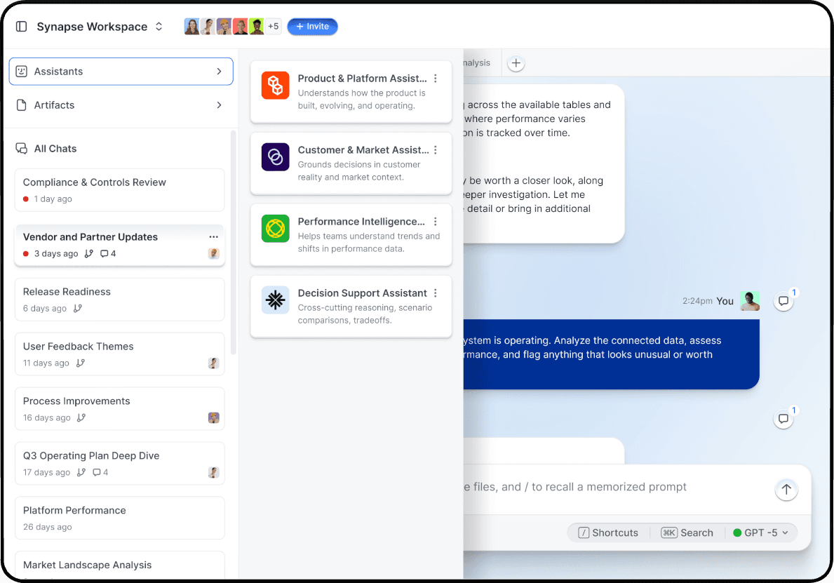 Share knowledge, workflows and assistants with your team