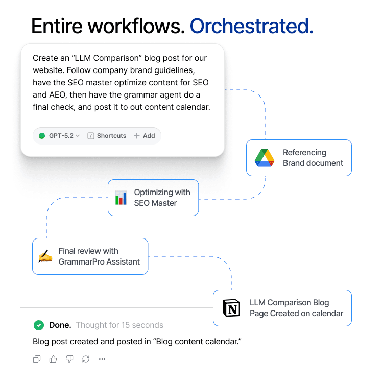 Stop juggling tabs and rewriting prompts. Work faster and create better with AI made for you.